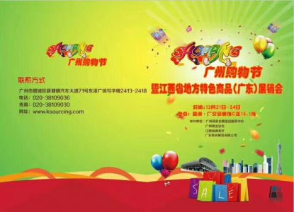 广州购物节暨江西省地方特色商品(广东)展销会 展会咨询:13312863056 胡蝶 展会时间:12月21日-24日 展会地点:广州 · 中国进出口商品交易会琶洲展馆C区15.1馆 主办单位:广州商务会……阅读全文>>展会日期:2017-12-21至2017-12-24  举办展馆:广州 · 中国进出口商品交易会琶洲展馆C区15.1馆