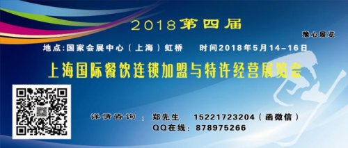 2018第四届上海国际餐饮连锁加盟与特许经营展览会 The 4th Shanghai InternationalCatering Chain Franchise and Franchise Exhibition 2018 展览时间:2018年5月14日-16日 展览地点:国家会展中心(上海) 批……阅读全文>>展会日期:2018-05-14至2018-05-16  举办展馆:国家会展中心(上海)