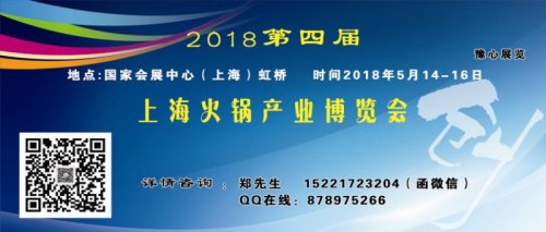 2018第四届中国(上海)火锅产业博览会 The 4th Shanghai International Hotpot Innovation Trade Fair 2018 展览时间:2018年05月14日-16日 展览地点:国家会展中心(上海) 虹桥 【展会概括】 火锅(英文……阅读全文>>展会日期:2018-05-14至2018-05-16  举办展馆:国家会展中心(上海)