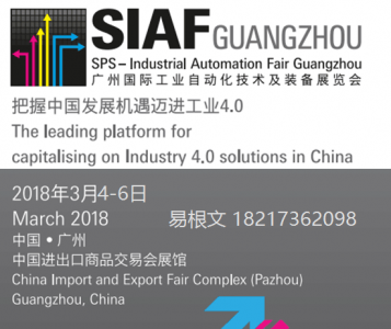 2018 广州国际工业自动化技术及装备展览会SIAF 2018 广州国际工业自动化展会SIAF 2018 广州国际工业机器人展SIAF 时间:2018年3月4-6日 展馆: 中国进出口商品交易会琶洲展馆 展馆地址:广……阅读全文>>展会日期:2018-03-04至2018-03-06  举办展馆:中国进出口商品交易会琶洲展馆
