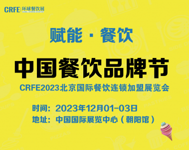 CRFE202 3 北京国际餐饮连锁加盟展览会 时间: 202 3 年 1 2 月 1 - 3 日 地点:中国国际展览中心 主办单位: 环宇餐创展览集团 展会主题:赋能餐饮 - 搭建中国餐饮加盟优选平台 支持单位……阅读全文>>展会日期:2023-12-01至2023-12-03  举办展馆:中国国际展览中心(朝阳馆)