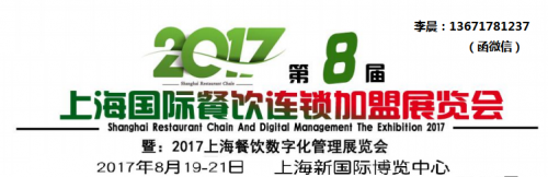 预定展位联系人:李晨 13671781237 2017上海第八届餐饮连锁加盟及数字化管理展览会 Shanghai restaurant chain and Digital managementThe exhibition 2017 展览时间:2017年8月19日-21日 展览地点:上海新国际……阅读全文>>展会日期:2017-08-19至2017-08-21  举办展馆:上海新国际展览中心