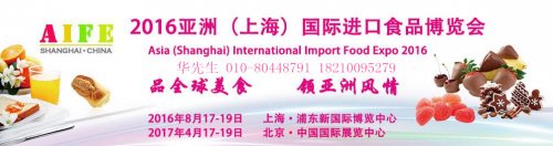 2016 上海十五届国际进口食品饮料展 批准单位: 中 华人民共和国商务部 指导单位:中国食品科学技术协会 国家食物与营养咨询委员会 中国食品工业协会 承办单位:北京世博威国际展……阅读全文>>展会日期:2016-08-17至2016-08-19  举办展馆:上海新国际博览中心