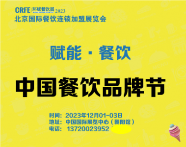 CRFE2023北京国际餐饮连锁加盟展览会 时间: 2023年 12 月 1 - 3 日 地点:中国国际展览中心 ( 朝阳馆 ) 【展会介绍】: 古语有云,民以食为天。因此,中国餐饮业一直有着 “百业之王……阅读全文>>展会日期:2023-12-01至2023-12-03  举办展馆:中国国际展览中心(朝阳馆)