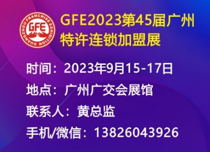 GFE 2023第45届广州特许连锁加盟展 ”将于2023年9月15-17日在广州琶洲展馆举办,诚邀各连锁加盟企业参展。 GFE2023第45届广州特许连锁加盟展 The45th GuangzhouInternatio nalFranchise Exhibition ------……阅读全文>>展会日期:2023-09-15至2023-09-17  举办展馆:广州广交会展馆