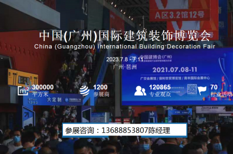 第二十五届中国(广州)国际建筑装饰博览会 展览日期: 2023 年 7 月 8-11 日 (2023 广州建博会 ) 展览地点: 广州琶洲 · 广交会展馆、保利世贸博览馆 主办单位: 中国对外贸易中心(集……阅读全文>>展会日期:2023-07-08至2023-07-11  举办展馆:广交会展馆和保利展馆