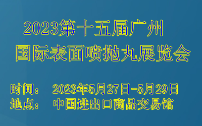 2023 第十五届广州 国际表面喷抛丸展览会 202 3Fifteen Shanghai international surface spray Shotblast Exhibition 地点:中国进出口商品交易馆 时间: 2023 年 5 月 27 日 -29 日 展会简介 Introduction “202 3……阅读全文>>展会日期:2023-05-27至2023-05-29  举办展馆:中国进出口商品交易馆