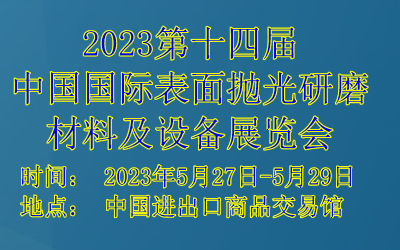 2023 第十四届中国国际表面抛光研磨材料及设备展览会 Fourteen China International Surface Polishing Abrasive Material and Instrument Exhibition 时间 Time : 2023 年 5 月 27 日 -5 月 29 日 地点 Venue : 中国进出……阅读全文>>展会日期:2023-05-27至2023-05-29  举办展馆:中国进出口商品交易馆
