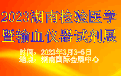 2023 湖南检验医学暨输血仪器试剂展览会 时间:2023年3月3-5日 地点:湖南国际会展中心 立足长沙专注于湖南地区医疗检验设备与学术会议的贸易服务平台 CWMEE 湖南检验医学展创办为加……阅读全文>>展会日期:2023-03-03至2023-03-05  举办展馆:湖南国际会展中心
