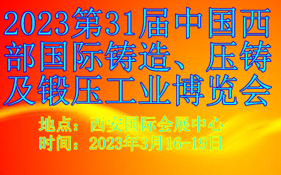 2023 第31届中国西部 国际铸造、压铸及锻压工业博览会 同期举办: 中国西部国际装备制造业发展论坛 地 点:西安国际会展中心 时 间: 2023 年3月16-19日 一、 大会简介 中国西部国际铸……阅读全文>>展会日期:2023-03-16至2023-03-19  举办展馆:西安国际展览中心