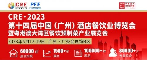 CRE·2023 第十四届广州餐博会 暨大湾区餐饮预制菜产业展 2023年5月17-19日 广州·广交会展馆B区 展会概况 为助力抓住2023下半年华南餐饮业发展新机遇,带来全方位的资源、服务与商机,……阅读全文>>展会日期:2023-05-17至2023-05-19  举办展馆:广州广交会展馆B区