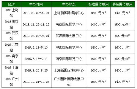 上海站 2019.8.23-25 标准展位:1600元/㎡ 特装展位:1400元/㎡