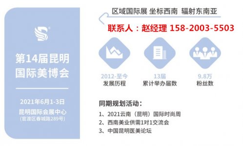20 2 1 第 1 4 届昆明国际美容美发化妆用品博览会 时间: 6 月 1 - 3 日 地点:昆明国际会展中心 6 号馆 2021 The 14th Kunming International Beauty Salon Cosmetics Expo Time: June 1-3 Venue: Hall 6 of Kunming Int……阅读全文>>展会日期:2021-05-27至2021-05-29  举办展馆:昆明国际会展中心