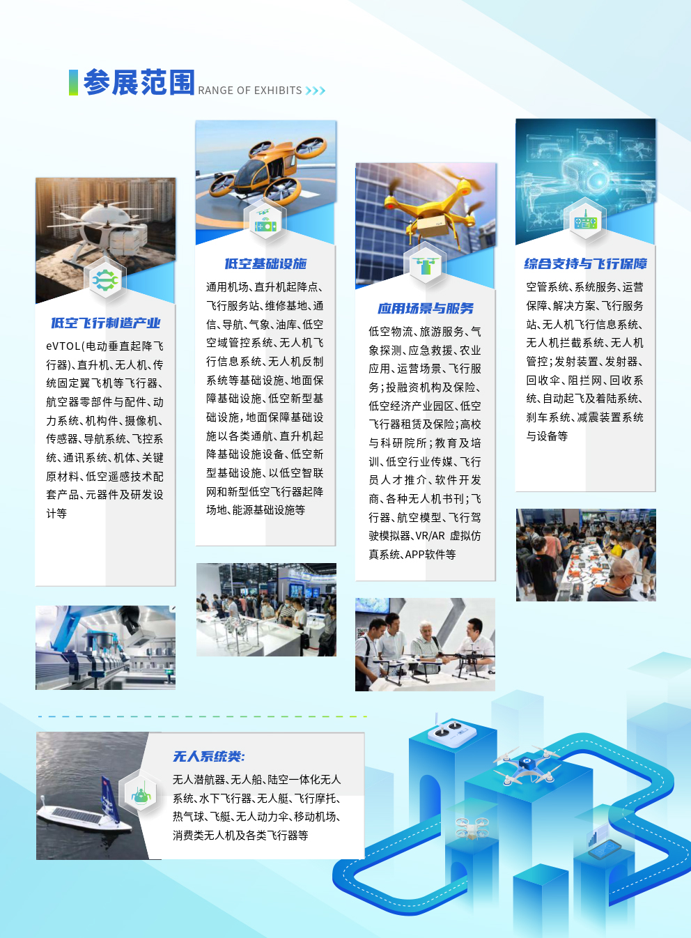 本届展会集产品技术展示、商贸对接、信息交流、技术论坛、行业峰会多重功能于一体,借助展会将有效促进企业品牌形象与实力的全面展示,并及时了解全球低空经济行业发展新趋势,在充分了解市场需求的基础上寻求品牌拓展、合作共赢新机遇。