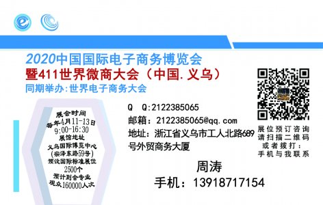 2020中国国际电子商务博览会暨数字贸易博览会将继续以“数字贸易新时代 电子商务新机遇”为主题,展览面积50000平方米,设数字商务展区、知名电商平台展区、跨境电商展区、电子商务示范城市/示范基地和示范企业展区、电子商务服务企业展区、社区电商/移动互联网展区、农村电商展区、品牌网货展区。展会同期还将举办世界电子商务大会、第12届中国通讯营销(电视、网络、移动)行业年会等活动。