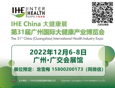 IHE China广州国际大健康产业博览会(简称IHE China)创办于2002年,迄今已连续举办至31届。IHE China是以全产业链、全题材为鲜明特色的大健康产业博览会。展会囊括全球范围内的大健康产业链上下游,致力于构建以健康营养食品、中医药及养生理疗、滋补品、妇幼健康、家庭医疗器械及健康管理、高端水及进口食品、健康粮油及有机农产品、食品包装机械等大健康细分行业。
