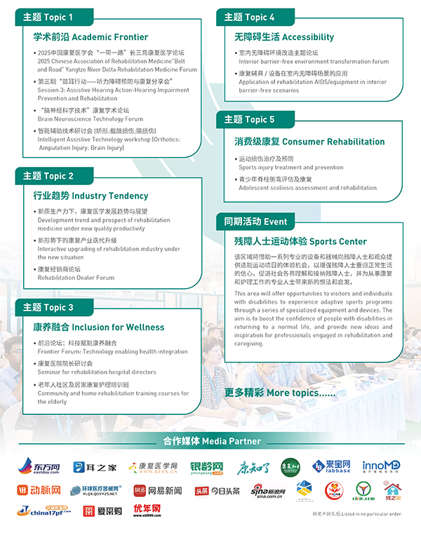 2025康复设备与解决方案展览会(简称:REHACARE康复展)以“科技赋能,融创新生”为核心理念,集中展示康养机器人及外骨骼类产品、养老康复用品、运动康复产品、智能康复产品、家用医疗产品、听力辅助设备、心肺康复产品和适老化设施厂家品牌商等,力争打造为“产品展示、商贸对接、学术交流”的大平台。