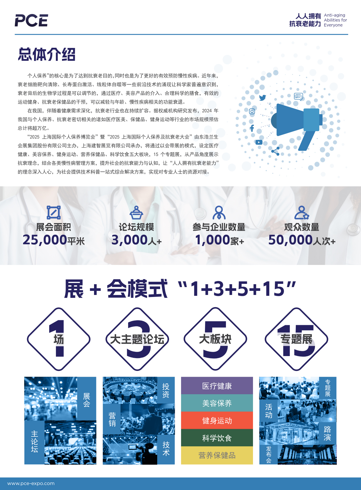 上海国际个人保养及抗衰老大会”由东浩兰生会展集团股份有限公司主办,上海建智展览有限公司承办,将通过以会带展的模式,设定医疗健康、美容保养、健身运动、营养保健品、科学饮食五大板块,15