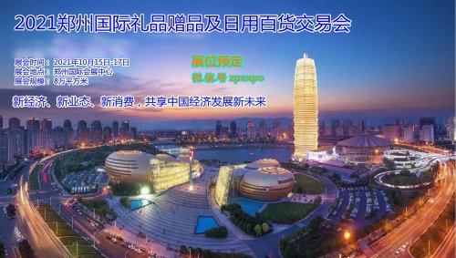 2021郑州国际礼品赠品及日用百货交易会 Zhengzhou International Gifts and Department Store Fair 展会时间: 2021年10月15日-17日 展会地点: 郑州国际会展中心 展会规模: 8万平方米 订展位热线:Mr张15821106898微信 新经济、新业态、新消费,共享中国经济发展新未来。
