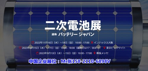 日本国际二次电池展览会(BATTERY JAPAN)创办于2010年,每年两届,由日本励展公司主办,是全球很大的二次电池展览会,此次展会聚集了包括二次电池、电容器、各种相关高端技术、材料、部件和用于生产研发二次电池和电容器的先进设备,吸引了一大批全球二次电池生产商、电池用户、新一代汽车制造商、电子制造商相关参观者,已经成为瞭望电池产业的重要窗口。往届日本国际二次电池展览会(BATTERY JAPAN)聚集了国际一线厂商,如古河电池(FURUKAWA BATTERY),日本瑞翁(ZEON),ELIIY Power,FDK,PRIMIX,MAXELL,TESLA,宁德时代,阳光电源等。