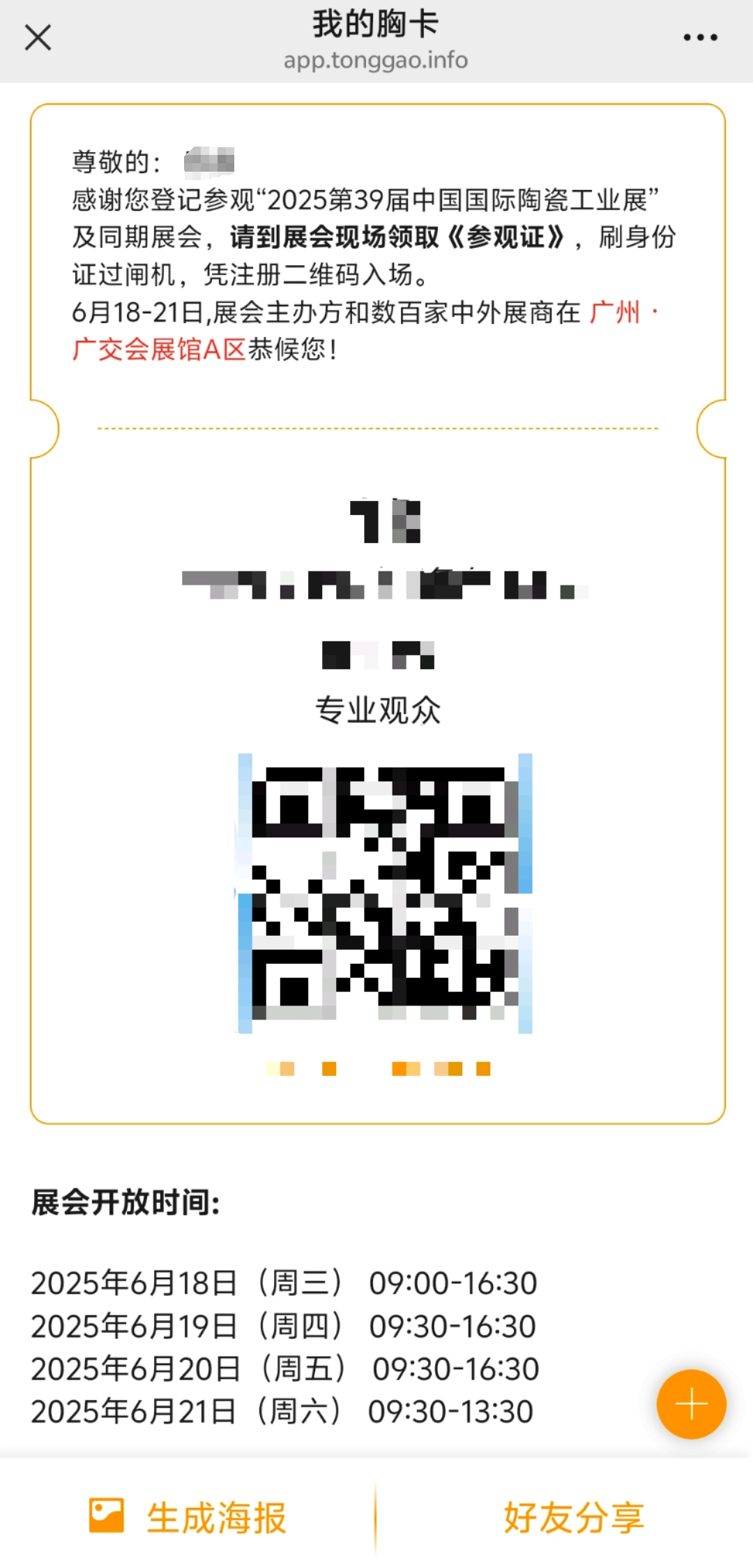 填写个人信息,获取参观二维码。展会现场凭二维码打印纸质《买家证》。