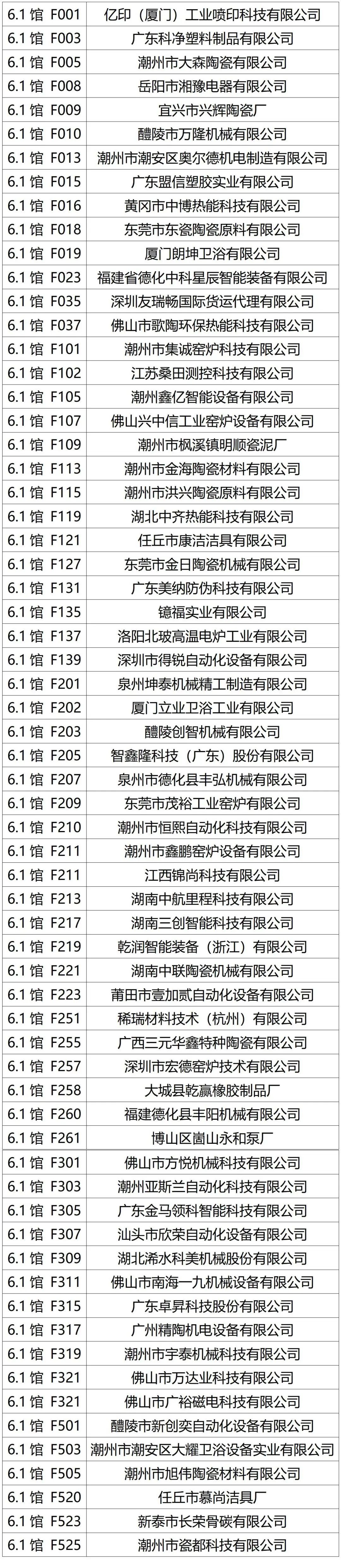 6.1馆展商名录及展位号,按展位号顺序排列