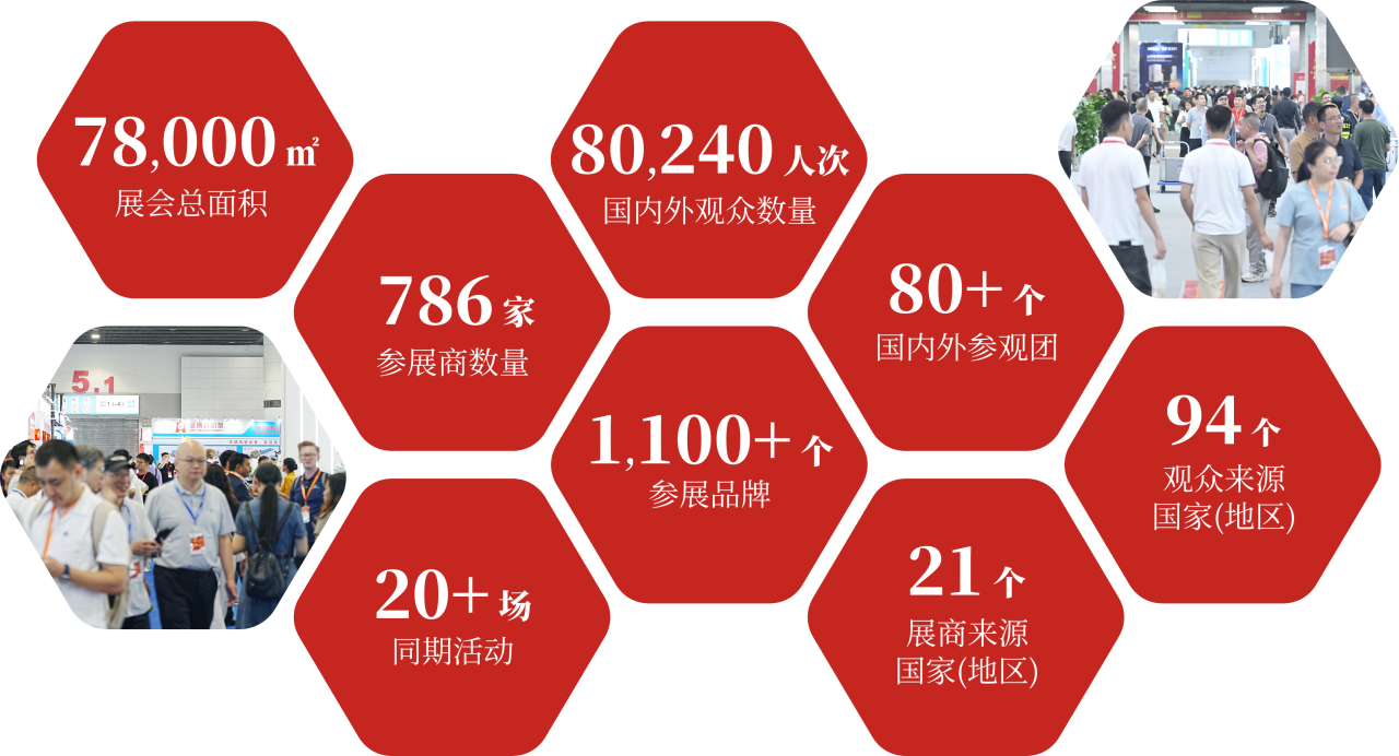 2025年第39届展会的展览面积为78,000平方米,中外展商786家,参展品牌1100多个,观众入场80,240人次,展商和观众来自94个国家和地区。