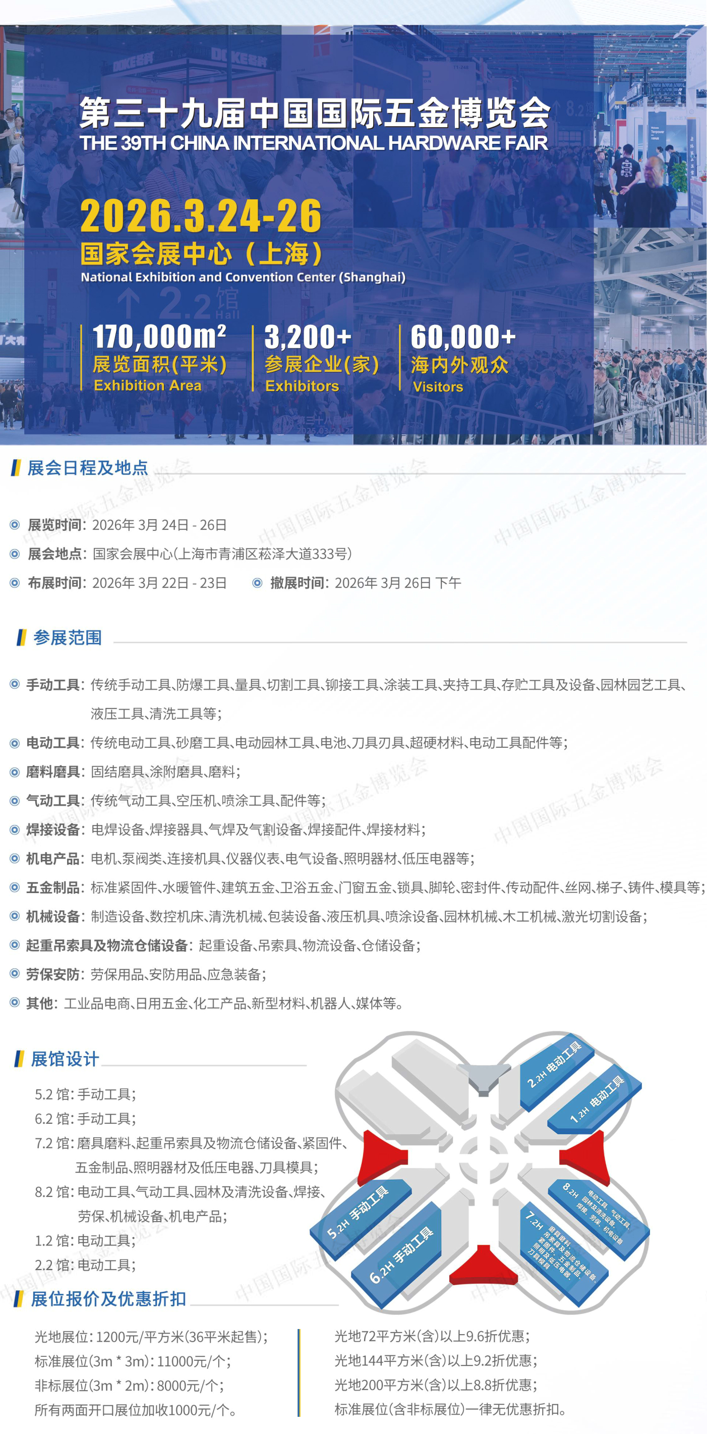 2026年3月24-26日,五金行业开年大展--第三十九届中国国际五金博览会与您相约国家会展中心(上海),共襄行业盛会。