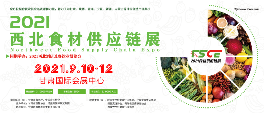 2021西北酒店及餐饮业博览会,由甘肃省商务厅、中国烹饪协会权威指导,甘肃烹饪协会主办。立足甘肃,辐射西北,面向全国!2021西北酒店及餐饮业年度硬核采购大会,全面启程,绽放九月!