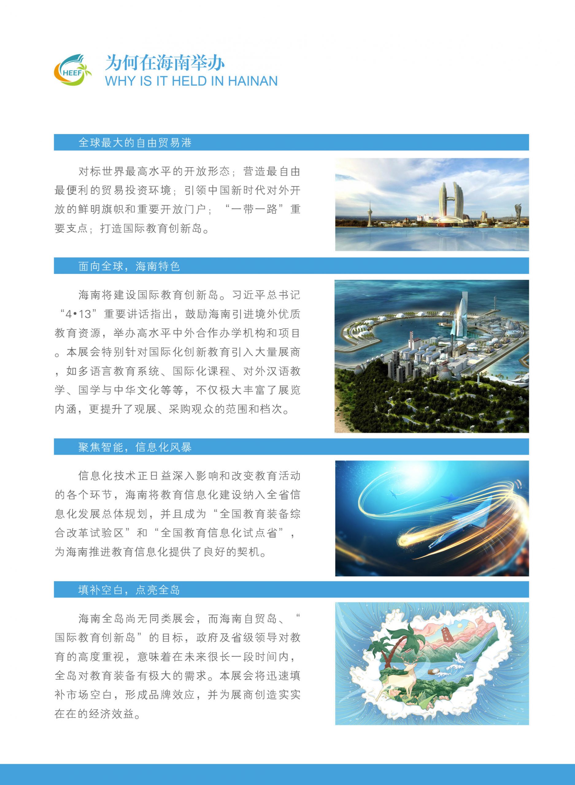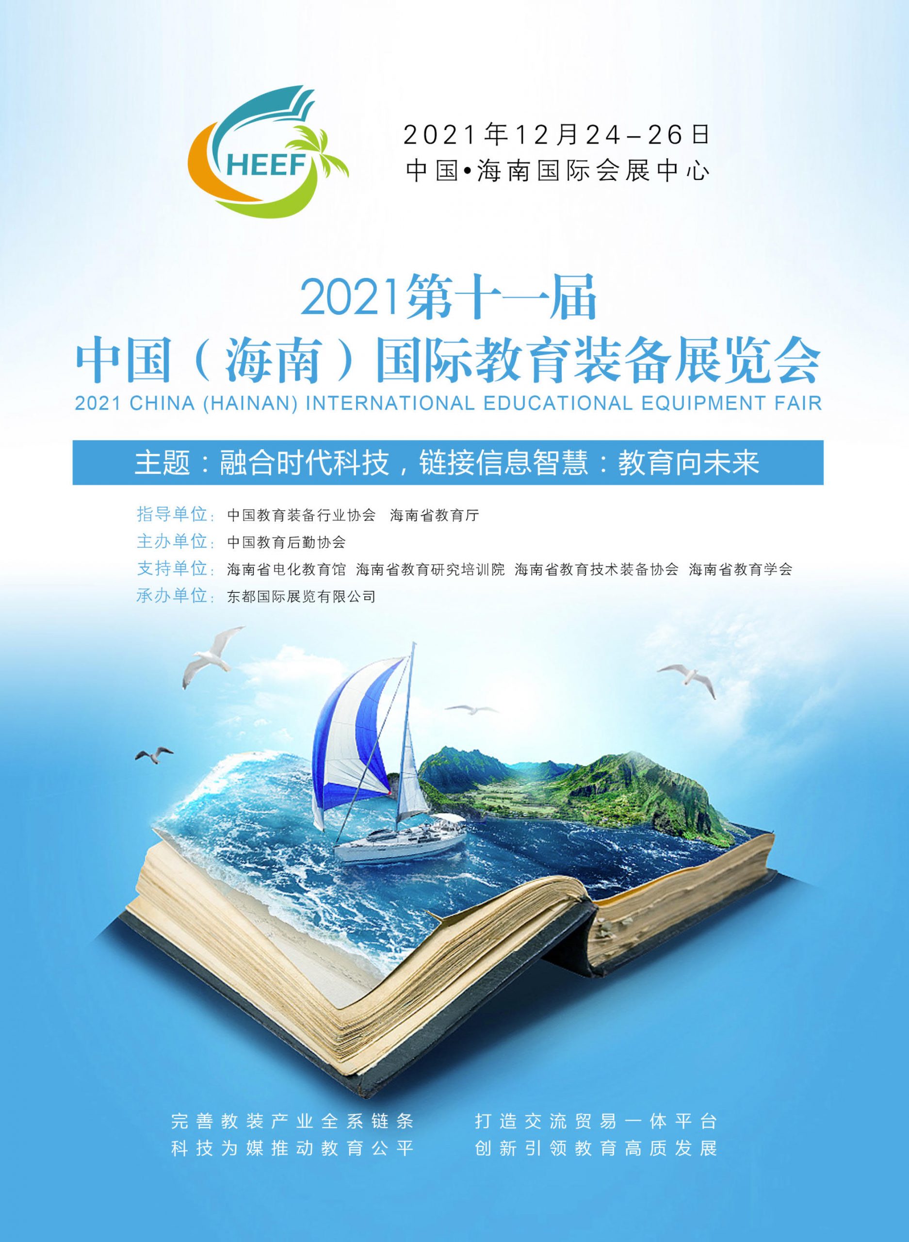 为响应国家关于大力发展教育产业、推动教育公平和教育高质量发展,为各类教育资源提供优质的交流对接平台,由中国教育后勤协会主办的中国(海南)国际教育装备展览会将于2021年12月24-26日在海南国际中心举办。本届展览会将以“融合时代科技,链接信息智慧:教育向未来”为主题,覆盖教育装备全领域,汇集全国及国际教育企业最新设备及技术。同期,并将举办“全国教育名校联盟合作发展大会”、“海南省教育装备新技术产品发布会”、“海南省智慧教育校长论坛”、“海南省名师名校发展论坛”、“自贸区(港)教育产业发展高峰论坛”、“教育信息化建设与应用研讨会”、“海南学前教育高质量发展论坛”、“国际化教育与“一带一路”论坛”、“中小学教育装备应用创新论坛”、“教育装备产业金融创新发展高端论坛”等多场论坛活动。
