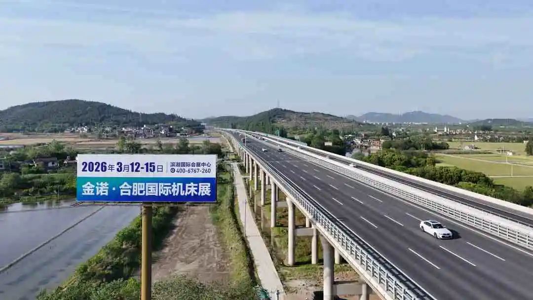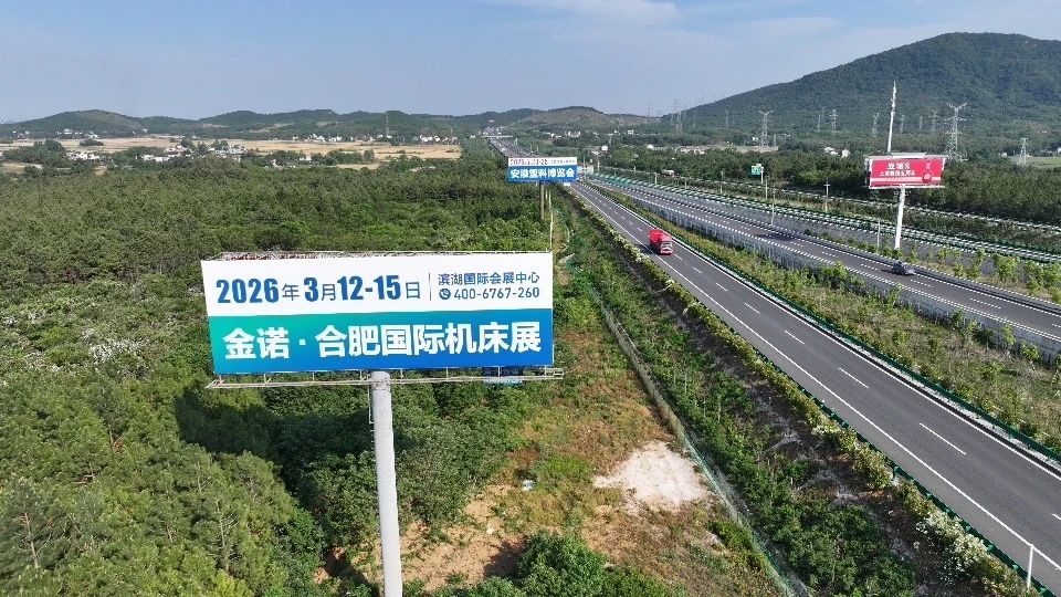 赋能万亿级制造 领航长三角智造新时代 在中部崛起战略的宏伟蓝图中,安徽犹如一颗璀璨的明珠,闪耀着制造业的耀眼光芒。作为中国中部崛起的战略支点,安徽省以万亿级装备制造规模与全球领先的汽车产业集群,持续刷新“智造强省”的国际名片。这里不仅是长三角一体化的重要腹地,更是全球装备制造业创新与供应链的核心枢纽。 2026年3月12-15日,第3届合肥国际机床展览会乘势而上,三月黄金采购季升级启幕,聚焦金属切削/数控机床/高端装备、金属成型/激光钣金/锻造冲压、智能装备/工业自动化/机器人、机床供应链核心部件/基础构造件/机床附件等。从技术展示到订单落地,从产业对话到生态共建,这里是长三角规模和影响力的智能装备集采盛会。 全域覆盖+硬核曝光:80+块户外广告引爆行业热度! 2026第3届合肥国际机床展览户外广告超级投放正式启动,全面覆盖安徽及周边各大高速枢纽、城际交通枢纽、重点工业园、产业集群,80+块户外广告高频曝光,抢占核心传播流量,让展会影响力持续扩散,为参展企业吸引更多潜在客户,保障宣传实效与订单转化! △ 合六叶高速六安段 △ 合安高速庐江段 △ 庐铜高速浮山出口 △ 合芜高速马鞍山西互通 △ 马巢高速清溪服务区 △ 合芜高速福山服务区段 △ 滁新高速颖上服务区 △ 合安高速-1 △ 合安高速-2 △ 合安高速庐江收费站 △ 合肥绕城高速三十头收费站 △ 合肥绕城高速众兴服务区 △ 合六叶高速大顾店枢纽 △ 合芜高速福山服务区3块 △ 沪渝高速清溪河大桥 △ 济广高速阜阳东 △ 台高速吴圩服务区 △ 京台高速武店铁路桥 △ 芜马高速姑溪河大桥 △ 芜马高速马鞍山东枢纽 △ 芜马姑溪河大桥 △ 宣广高速洪林服务区2块(白化桥) 未完待续 更多线上线下线广告 持续发布中