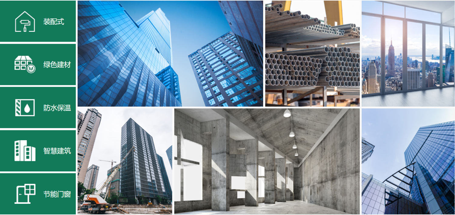 保温材料、防水材料、防火涂料、建筑涂料、防水保温一体化、干混砂浆、新型墙体材料、系统配件和辅助材料等。