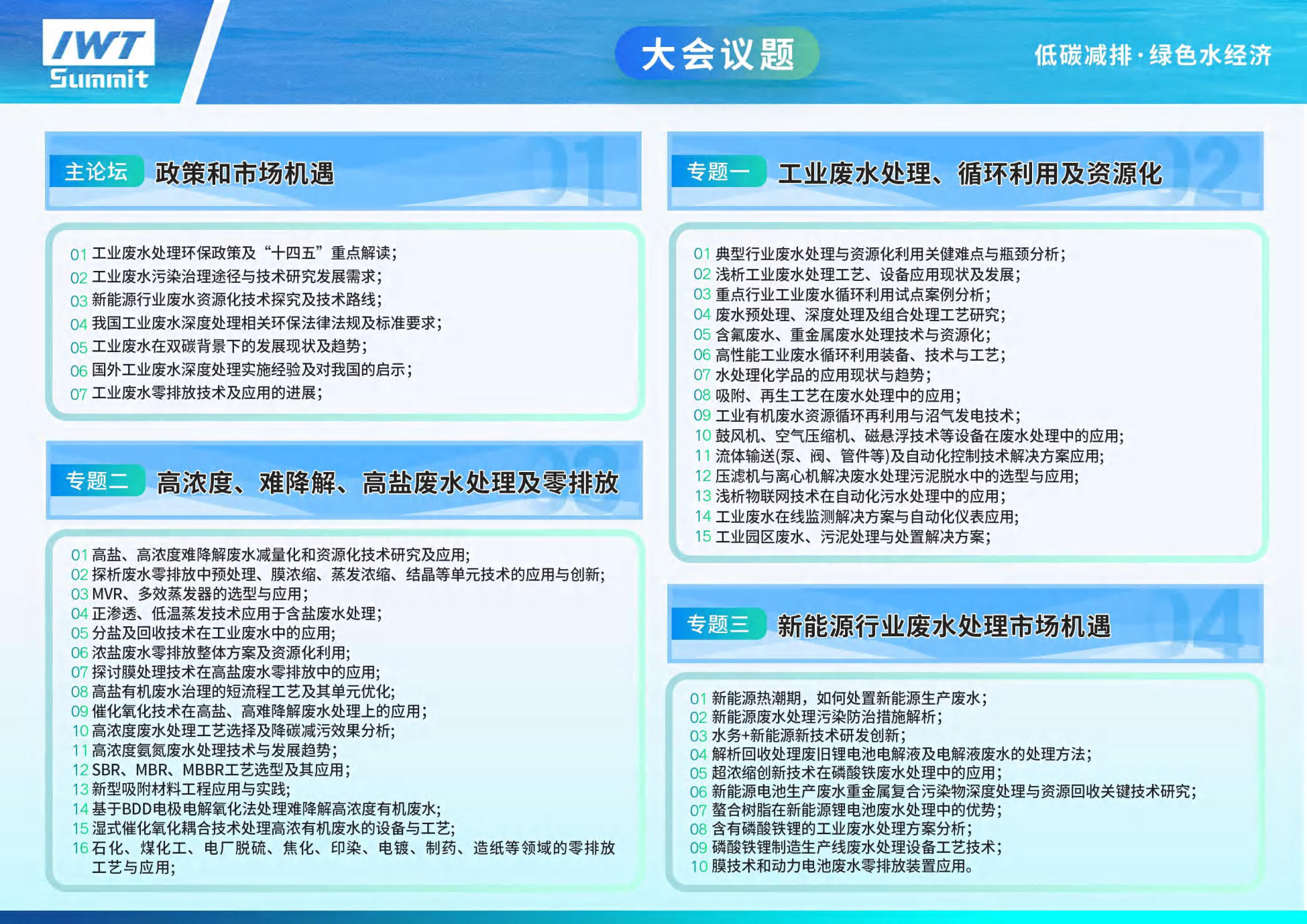 专题一:工业废水处理、循环利用及资源化