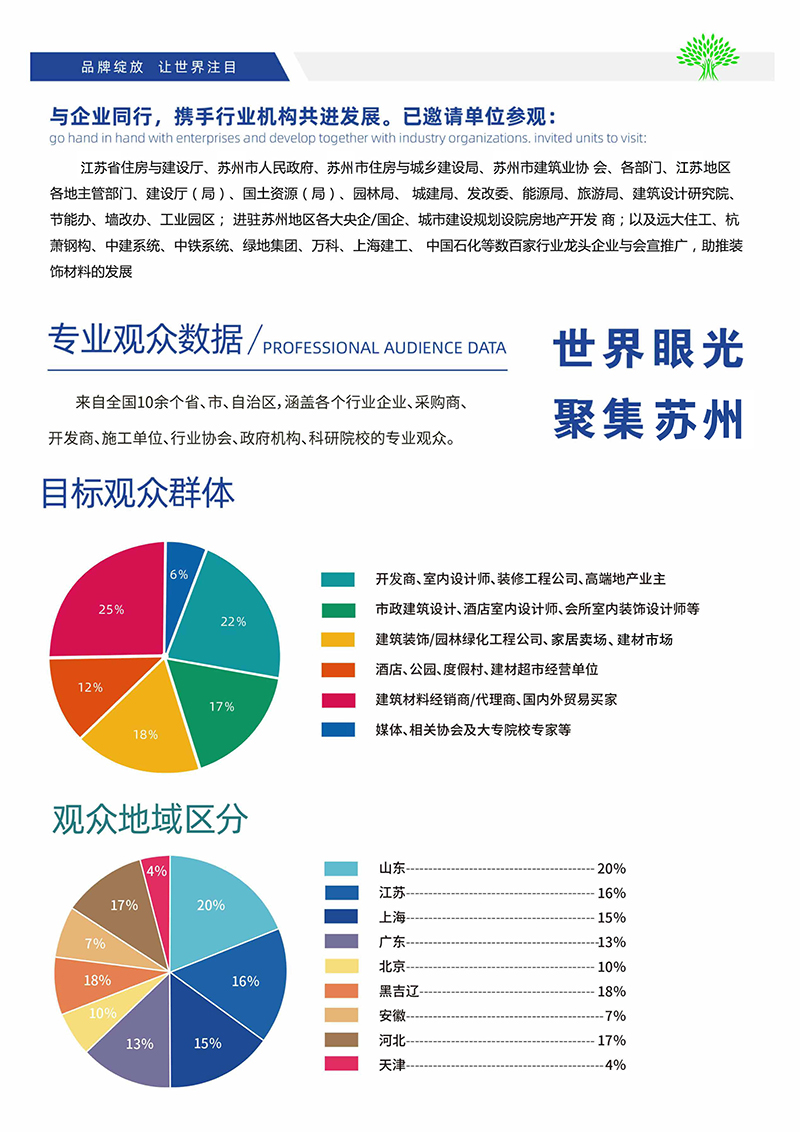展会立足苏州,辐射全国,精准对接华东地区渠道及采购商,广邀数万展商及专业买家观众,搭建黄金商务对接平台,整合行业资源,释放行业潜力,助力门业全屋定制行业开启新篇章。随着我国城市建设,数量的与日俱增门业及全屋定制迎来了空前庞大的市场, 门业家居企业需紧握城市场商机,不断实现行业产品、技术的创新进步,强化对企业、品牌、服务的宣传推广力度。再度聚焦于门业及全屋定制领域、以专业的展会操作,丰富的观众组织资源和优质的贸易效果,再度成为门业家居、展示、产品推介、合作交流、贸易采购的理想对接平台。由上海华创博展展览服务有限公司组织的“2023中国(苏州)国际门业及全屋定制展览会,于2023年07月13-15日在苏州国际博览中心盛大开幕,超大的规模、国际化的服务,一站式采购交流平台,我们将在苏州恭候您!
