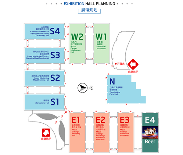 S2/S3/E1/E2/E3馆: 金属成形、激光加工系统;锻压、冲压装备;柔性单元;金属切削;高档数控机床与基础制造装备;功能部件;