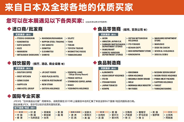 日本大阪国际食品展览会JFEX JAPAN与食品的主要进口商,生产商,供应商和分销商以及销售食品的零售商建立合作伙伴关系;与杂货零售商和寻求优质产品和蕞佳商业交易的买家互动;将您的品牌展示给快速增长且利润丰厚的市场。