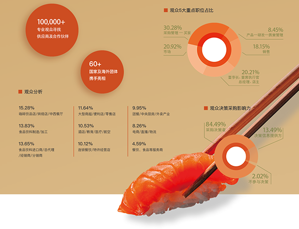与我们一同前往各省市与当地优质渠道商、经销商建立合作,将产品快速铺向目标地区。中食展为展商寻找拓展渠道的精准之先。