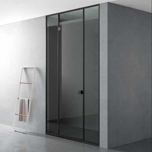 德立SA7系列,摒弃传统合页设计,创新的包框合页使整体线条感尤为对称,美观安全。同时内部巧妙增加胶圈,防止金属与玻璃直接接触,杜绝玻璃下坠自爆等隐患,独创的反刺胶条,可以使玻璃牢牢固定于仅2公分左右的侧材内,牢锁玻璃,均匀受力,既保证了美观又保证了安全。
