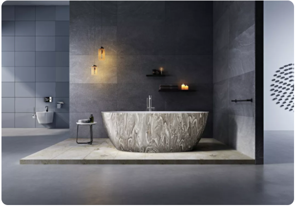 此次即将在展会上亮相的均为阿普凡卫浴高端产品。祖鲁兰系列,它由岩板和根管的创新融合而成,即拥有智能毛巾架高效抑菌、电热烘干、防湿防潮、智能恒温、漏电保护等实用功能,又具备岩板自身高硬度,耐高温、防刮花、易清洁的特点。与此同时,每一块岩板纹理都与众不同,完美适用卫浴空间,为空间添高级与层次。