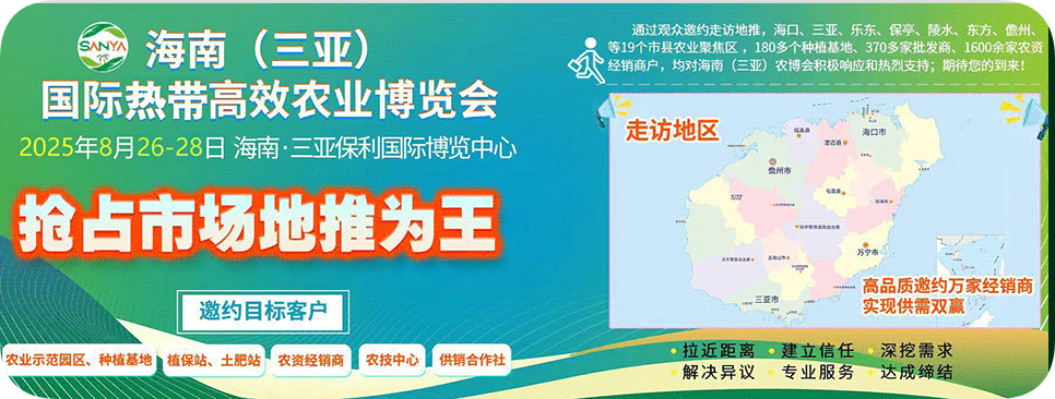 我们坚信,2025海南农博会必将进一步激发农业创新活力,促进国内外企业之间的深度合作与交流,加快培育热带高效农业领域的新质生产力,为推动全球热带高效农业科技创新和产业升级作出更大的贡献。目前,展位预订活动已全面开启,期待与您携手合作,共同开拓商机。