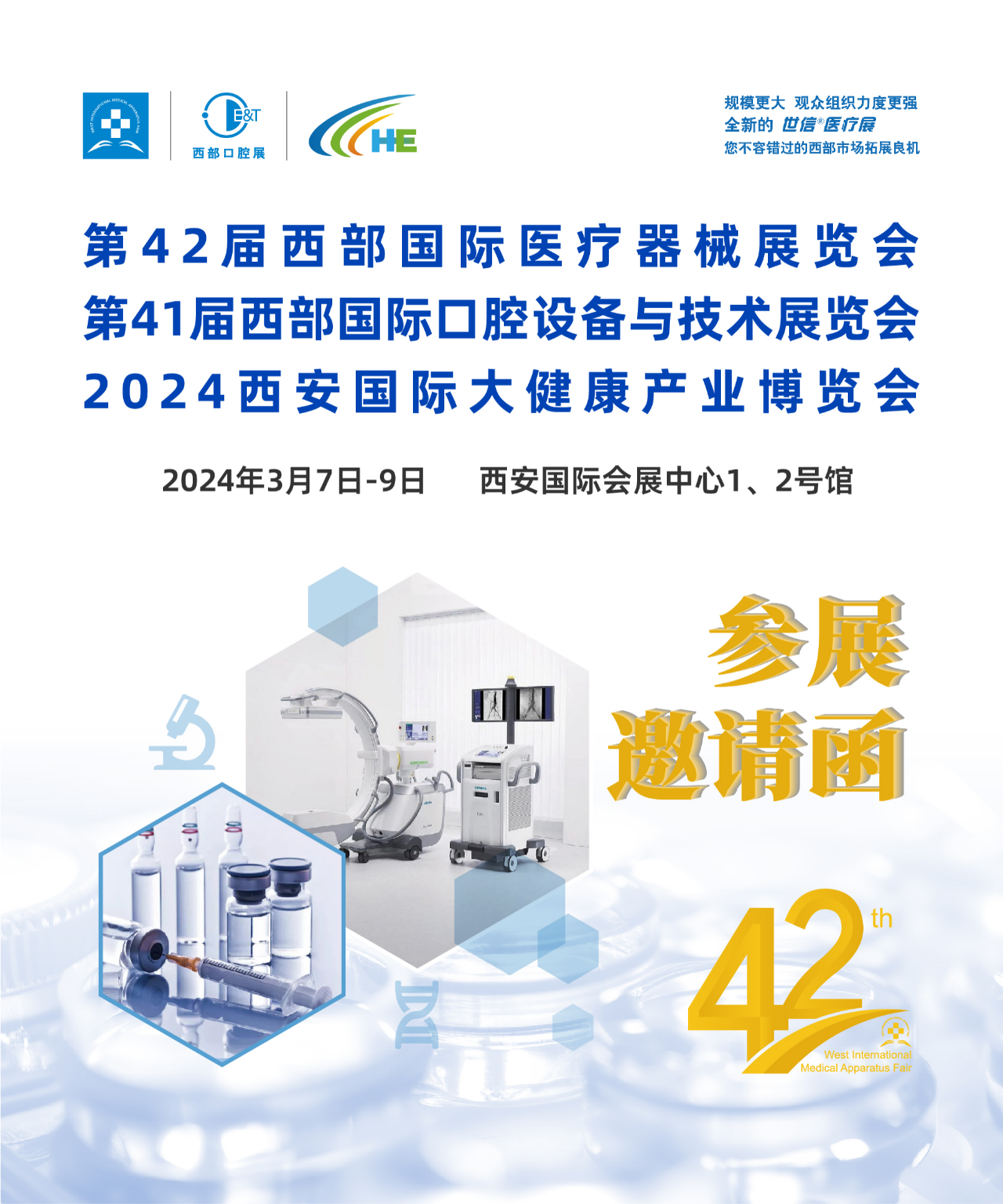 西部国际医疗器械展览会简称世信医疗展,从1999年至今已成功举办了41届,共计吸引超过8000+家医疗器械厂商参展。本届展会将重点邀请西部各省市医疗机构、行业协会、采购商、经销代理商及行业专家共同参与,形成一个集论坛活动+平台展示+用户对接+系统服务为一体的行业盛会,给予新老客户全新参展参会体验。感谢所有支持与关注世信医疗展的新老客户,竭诚欢迎国内外客商相约西安,世信医疗展愿与您携手并进,共创未来!