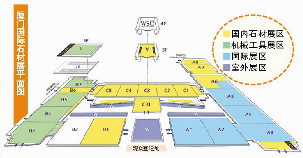本届厦门国际石材展览会规模宏大,居全球第一。展会共设置国际标准展位9300个,覆盖会展中心全部展览面积,包括位于一、二期展馆三楼的两个轻型展厅和前广场,共计23个展厅,设有国内石材展区、机械工具展区、国际展区和室外展区共四个展区。