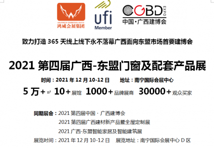 2021秋冬季门窗展-广西门窗展览会 市场优势:拓展西南后开发市场、对接东盟国际化平台 为落实国家 “一带一路”政策,促进建材、家居行业落地实施;全面融入粤港澳大湾区建设的……阅读全文>>展会日期:2021-12-10至2021-12-12  举办展馆:南宁国际会展中心