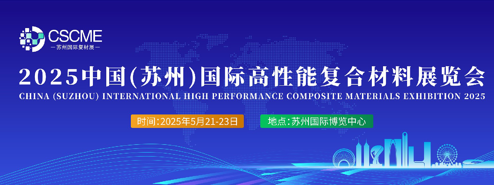 “CSCME 2025中国(苏州)国际高性能复合材料展览会”将于2025年05月21-23日在“全球智造之城”苏州隆重举办,展会以“复材大世界,智造新未来”为主题,旨在加强复材产业全链协同、整合……阅读全文>>展会日期:2025-05-21至2025-05-23  举办展馆:苏州国际博览中心