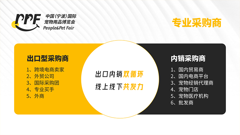 中国(宁波)国际宠物用品博览会以“People&Pet"为核心理念,专注2B交易,关注人宠发展!展会将结合出口及内销进行双循环渠道的打造,同时做好线上线下双模式的发力,为宠物展商搭建一个高效、专业的贸易配对平台。