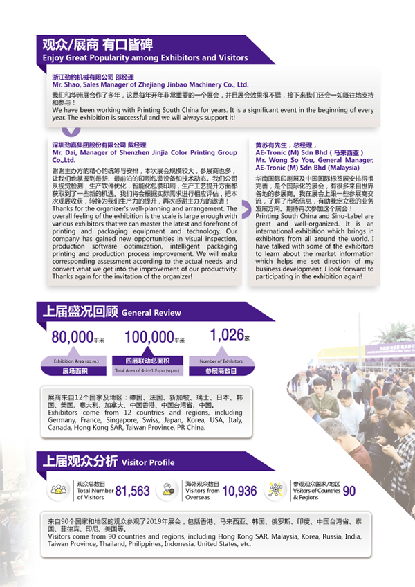 「华南国际印刷工业展览会」,迈入成长第二十七载,携手「中国国际标签展」、「中国包装工业展」、「包装制品展」,全面贯穿印刷包装产业链及终端应用,为企业提供印刷、标签、包装及包装制品“一站式”采购平台。