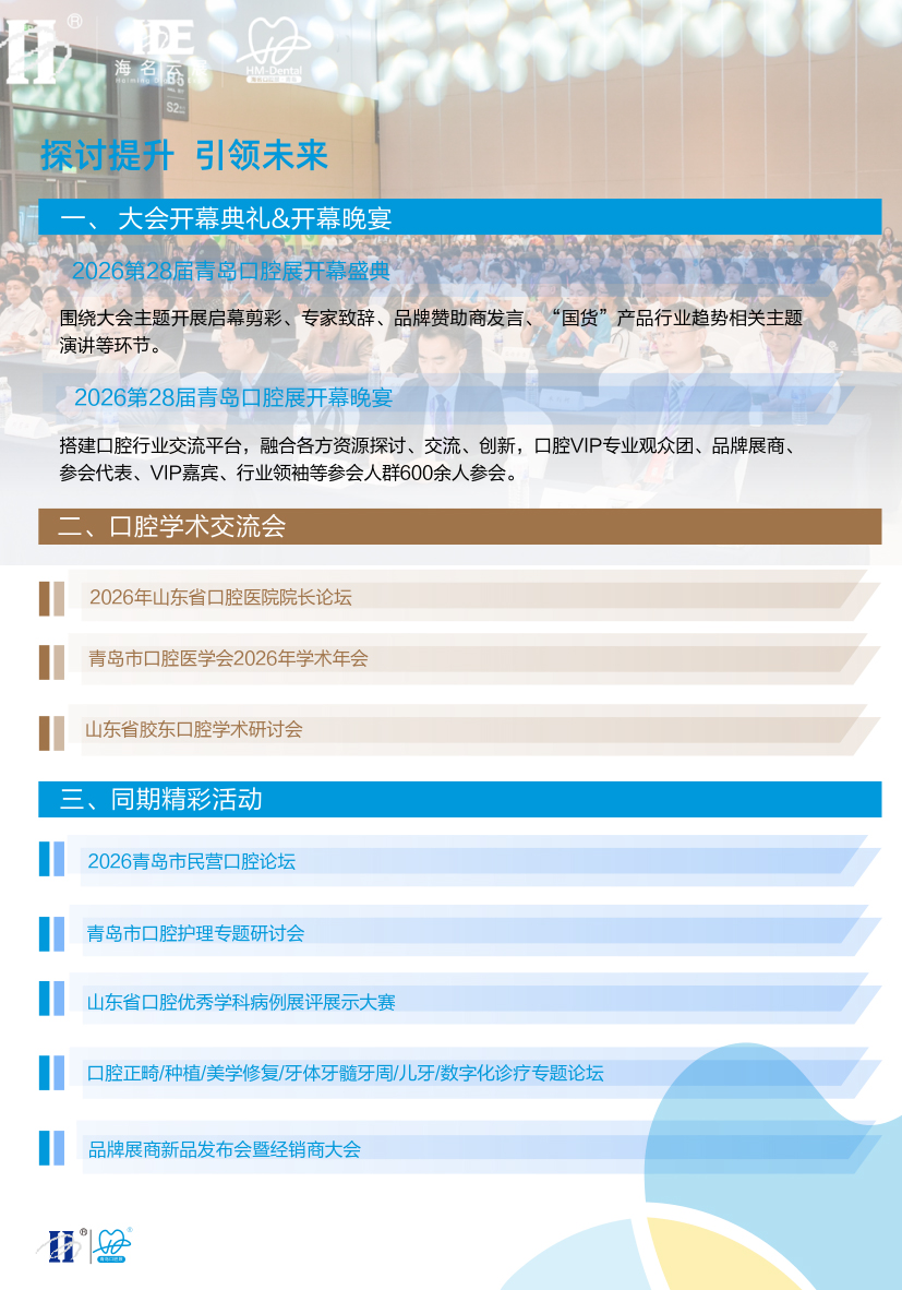 由海名国际会展集团、青岛市口腔医学会、青岛市民营口腔协会等权威机构主办,青岛海名国际会展有限公司承办的的2026第28届中国(青岛)国际口腔器材展览会暨学术交流会将于2026年7月2-4日在青岛国际会展中心(红岛馆)盛大召开。