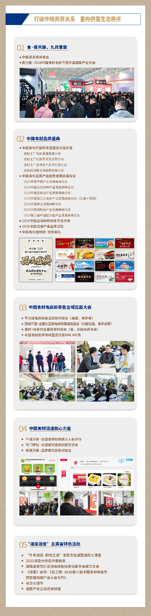 作为疫后行业“打破传统商贸关系·重构供需生态秩序”的大展,本届中国食材电商节新增米面粮油、餐饮专用的饮品及酒类,餐饮加盟等主题展区,全力打造疫后行业规模最大品类最全的年度盛会。