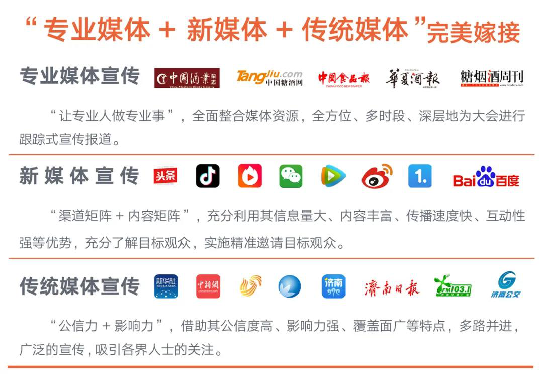 2020第十四届山东国际糖酒会主要分为“展览展示、会议论坛、特色活动”三大板块。作为企业展示品牌的舞台,捕捉商机的风口,开拓市场的平台,是专业买家“洽谈贸易、寻求商机、双节备货”的必选平台!