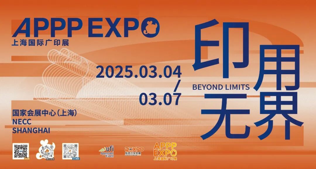 齐聚全球力量,共探广印未来!2025 APPPEXPO上海国际广印展将于2025年3月4-7日在国家会展中心(上海)举办。站在新的发展起点上,APPPEXPO上海国际广印展将与国家战略、行业迭代、企业发展同频共振,以“展示成果、推动交流、合作共享、引领创新”为办展宗旨,聚力搭建国际化、数智化、专业化的贸易交流平台,赋能国内国际双循环,助推广印行业高质量发展。 APPPEXPO 2025正式定档 2025.3.4-3.7 国家会展中心(上海) 以 “印用无界” 全新主题 为广印行业创新发展注入强劲动能 技术突破 共迎“印用无界”新时代 创新无限 @全球广印人士 APPPEXPO 2025集结号再次吹响 愿携手同行,共启『印用无界』新时代!